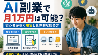 AI副業は本当に稼げるのか?本記事では初心者が月1万円を目指すための現実的な方法と具体的なステップを解説します。ブログ・SNS・コンテンツ販売の3つの戦略をわかりやすく紹介。